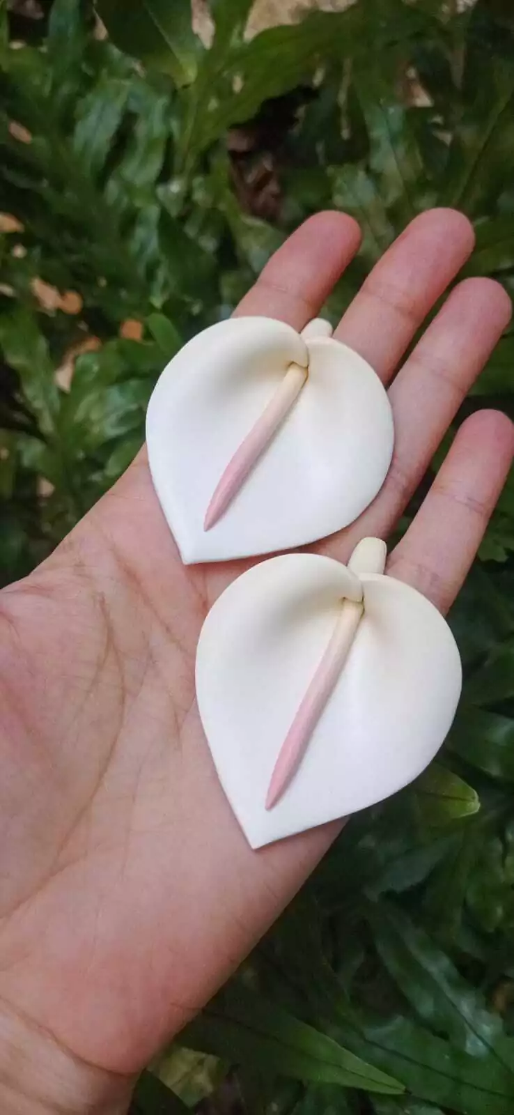 Par de brincos tamanho grande com pino (tarracha). Brincos inspirados nas flores da planta Copo de Leite.